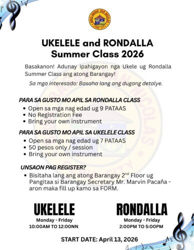 Attention mga bata!Ang Barangay Basak, San Nicolas, Cebu City mopahigayon napud ug Summer Rondalla Classes…