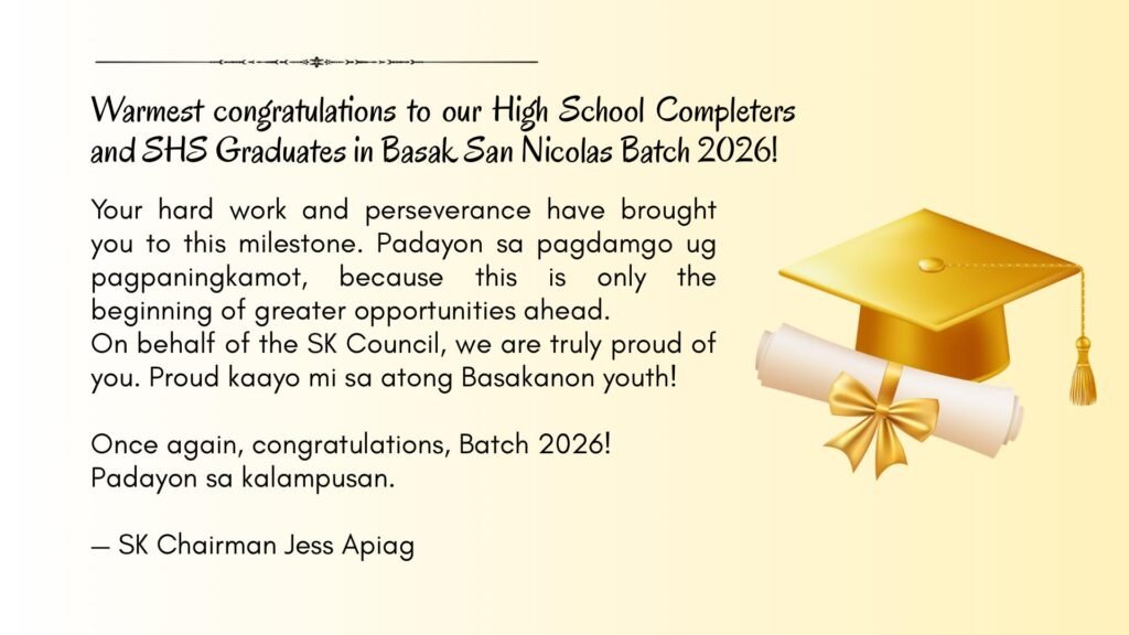 On behalf of the SK Council, we are truly proud of you. Proud kaayo mi sa atong Basakanon youth!