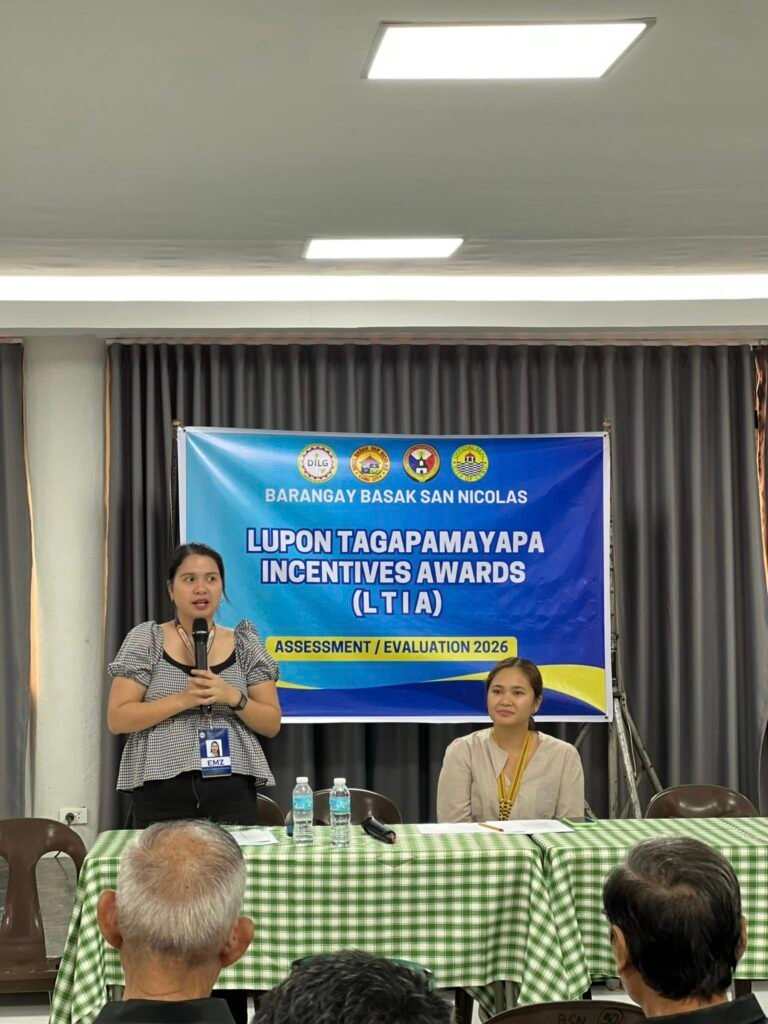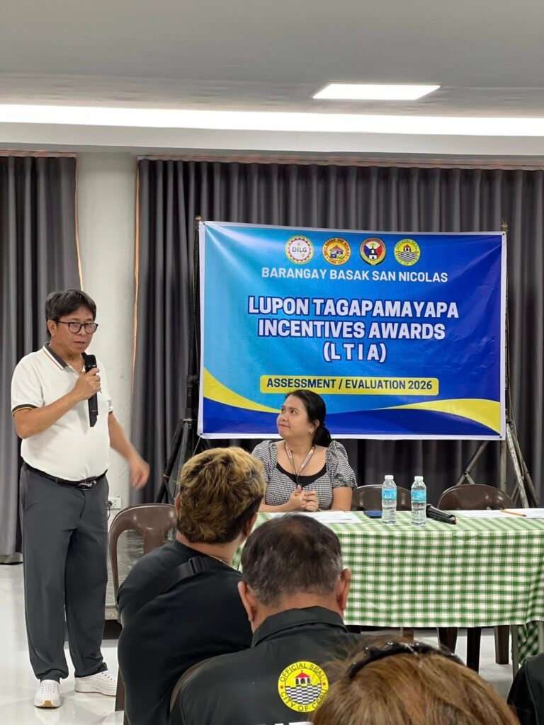 Malampuson nga gipahigayon karong adlawa ang Lupong Tagapamayapa Incentives Awards (LTIA) Assessment/Evaluation 2026 sa Barangay Basak San Nicolas, uban sa presensya ug pagdumala sa mga representante gikan sa Department of the Interior and Local Government (DILG).