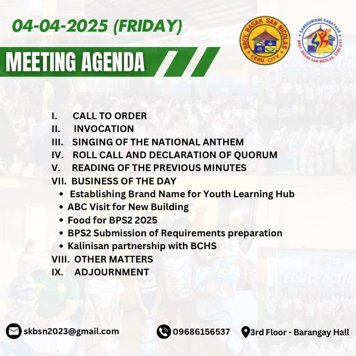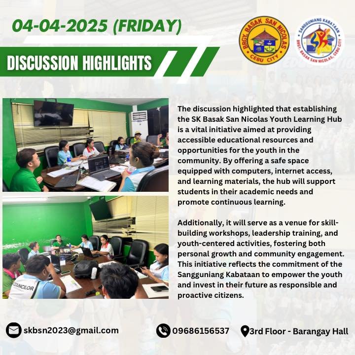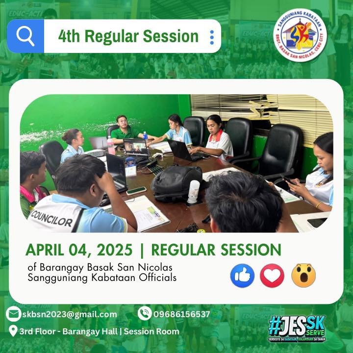 The SK Officials of Barangay Basak San Nicolas successfully held their 4th Regular Session last April 04, 2025 at the Barangay Basak San Nicolas Session Hall. ✅