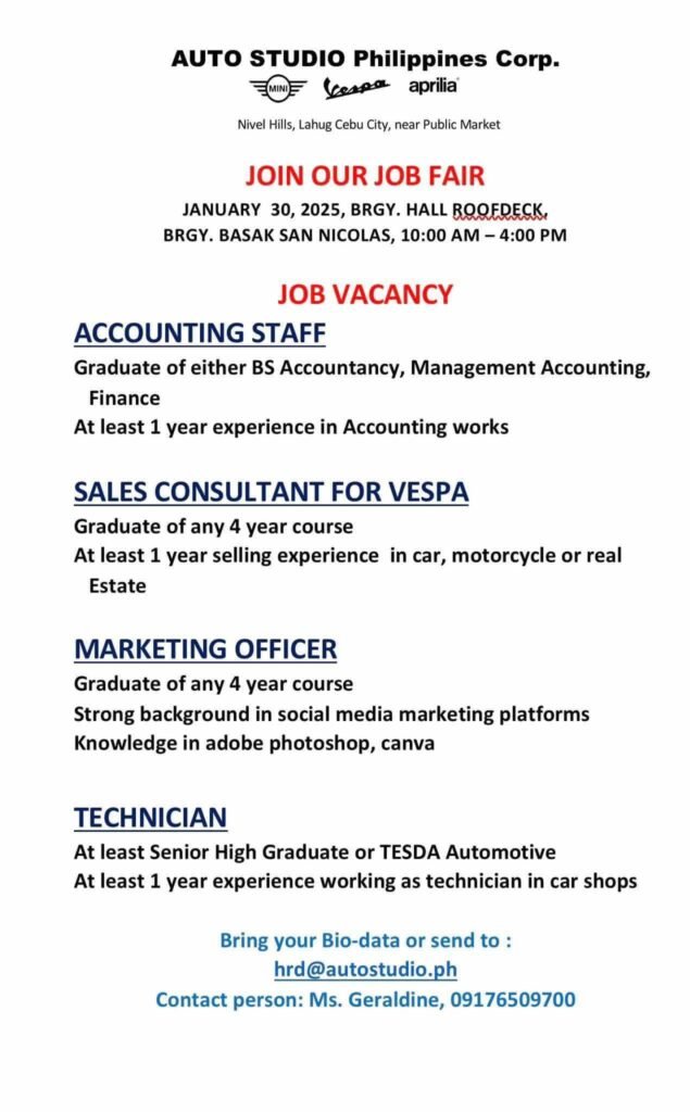 Nagpahibalo ang Barangay Basak San Nicolas sa tanang interesadong aplikante nga adunay JOB FAIR nga ipahigayon aron makahatag og oportunidad sa trabaho sa atong mga katawhan.