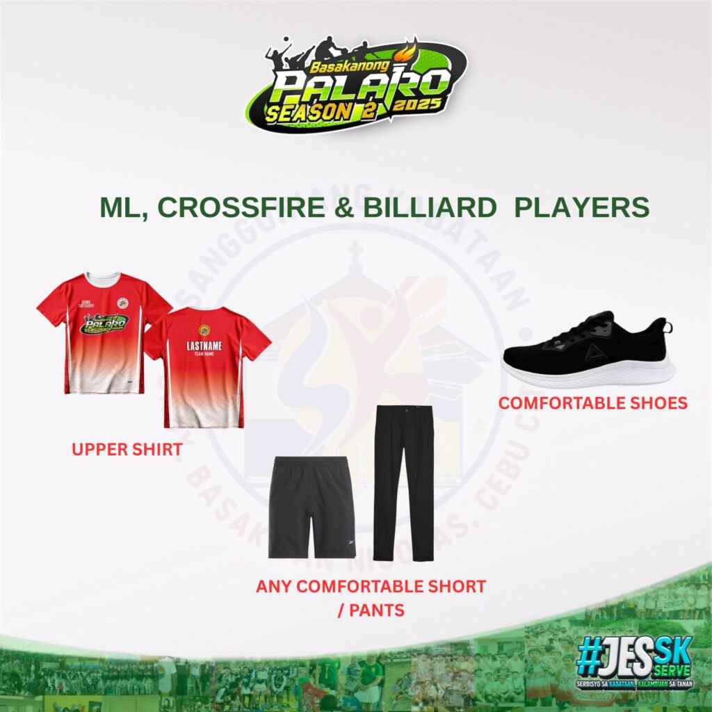 All players are highly encouraged to follow the designated dress code for the event. Let’s uphold unity and sportsmanship by coming in proper and coordinated attire.