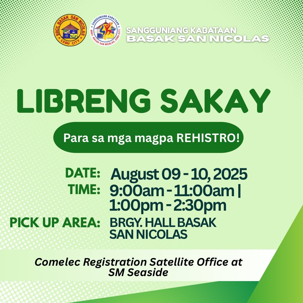 Aduna kitay LIBRENG SAKAY alang sa mga mag-rehistro karong umaabot nga Sabado ug Dominggo, August 9–10.