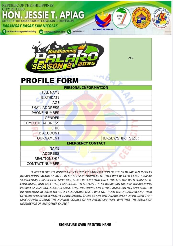 Padayon gihapon ta sa pag-release sa Registration Forms para sa Basakanong Palaro Season 2! π π Location: SK Office, 3rd