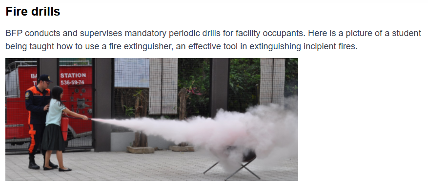 An article published on the Flameguard: Fire Protection Philippines website outlines the key requirements of the Bureau of Fire Protection (BFP) under the Fire Code of the Philippines (Republic Act No. 9514).