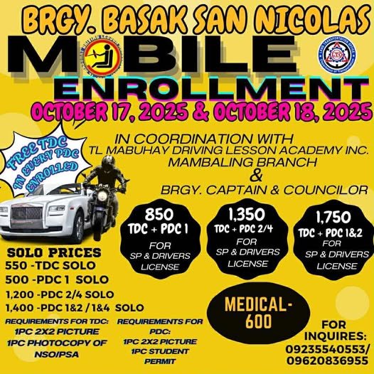 Magpahigayon ang TL Mabuhay Mambling Branch og Mobile Enrollment karong:๐ October 17 ug October 18,…