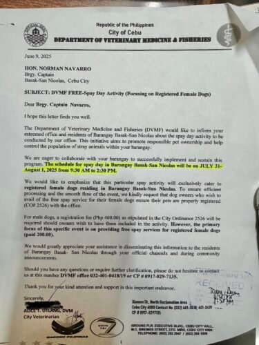 Gipahigayon ang Free Spay Day para sa atong mga iro ug iring: 📅 July 31,…